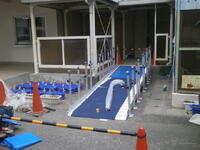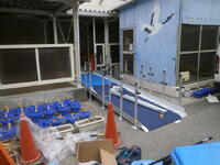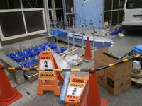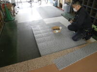 体育館入り口脇にスロープを設置する工事を行っています。選挙の時には、投票会場ともなる体育館ですので,