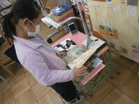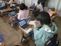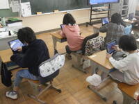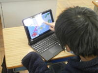 【わかば学級】ICT支援員の先生に教わりながらタブレットを使い、学習しています。