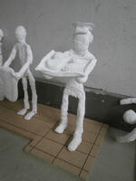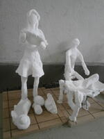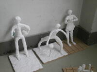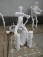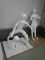 スポーツ選手やコックさん、将来の夢の姿を粘土で製作中です。ポーズも工夫しています。