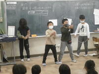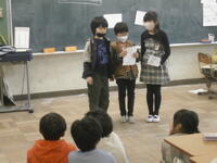 国語の授業で学習した『ねずみの嫁入り』の音読劇を1年生に披露しました。練習の成果を発揮して堂々たる演技で小道具も工夫されています。最後は1年生からお礼のあいさつもありました。