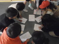 児童委員会主催の『キーワードクイズ』、本日は5年生と6年生が挑戦しています。廊下に貼られたキーワードを探してクイズを解いていきます。