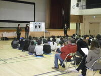 6年生が入学を前に八中を訪問しました。体育館で生徒会の方から学校紹介の説明や部活動紹介のビデオを見た後、校舎内を案内していただきました。希望に満ちた中学生活をスタートしましょう!