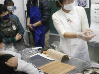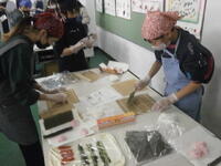 栄養士の先生、千葉伝統郷土料理研究会の先生を講師に迎え、まつり寿司作りに挑戦しました。