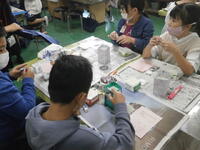 いろいろな材料を使って、遊べるものを作っています。また、その様子をタブレットで記録していきます。