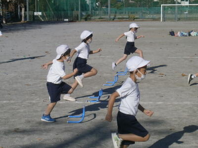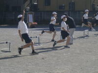 5年生が校庭でハードルの授業です。子どもたちのハードルの超え方もどんどんかっこよくなっているようです。