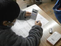 電卓を使って『単位量あたりの大きさ』を計算しています。