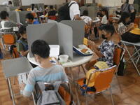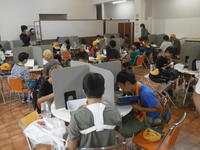 【宿題お助けくらぶ】参加希望者が多かったため、学習室と図書室に分かれて実施しています。