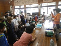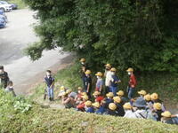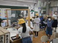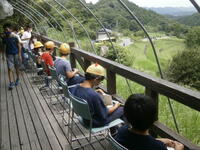 大山千枚田でクラス毎に自然観察と藍染体験を行っています。棚田ではたくさんの生き物を発見しました。
