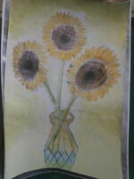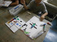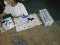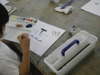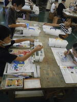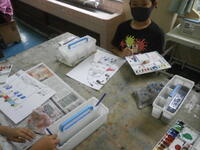 下絵に絵の具で色を塗っています。作品の完成が楽しみです。