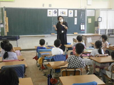 人権擁護委員の方を講師に迎え、2年生で人権教室を開催しました。ランドセルの色を話題にして「昔は男の子は黒、女の子は赤ばかりだったのに、今はいろんな色があるでしょう。」と子どもたちの身近な話題を交え、人権についてお話しいただきました。
