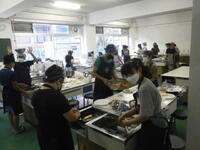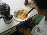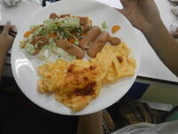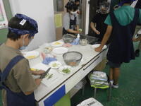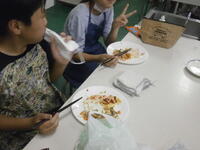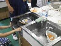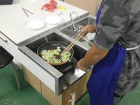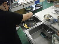 たまご料理と野菜炒めに挑戦です。調理室中にいい匂いが漂っています。