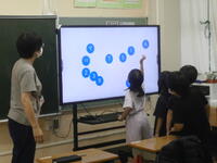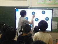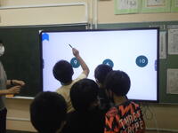 【算数】画面に映し出された数字を小さい順に交代でタッチしていきます。全問正解すると・・・