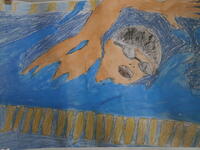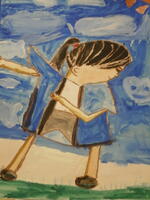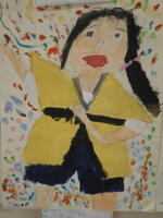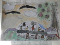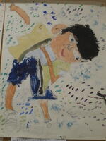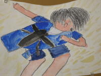 運動会で踊った『つるっ子ダンス部』を絵に描きました。それぞれ決めポーズで、今にも絵から飛び出してきそうなダイナミックな動きを表現しています。