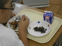 6校時に、わかば学級が中庭で虫取りをしました。虫も捕れましたが、蚊に刺された子どもも多数いたようです。