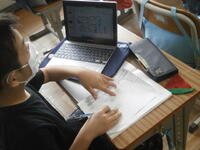 現在、学級閉鎖中の4年生のクラスは、オンラインで授業を行いました。