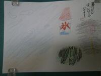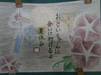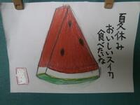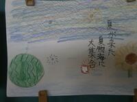 夏休み直前、『夏』をテーマにした絵手紙が5年1組の廊下に展示してあります。力作揃いですので、全員分紹介させていただきます。 ※ 個人情報保護のため、氏名の部分を一部画面修正させていただきました。