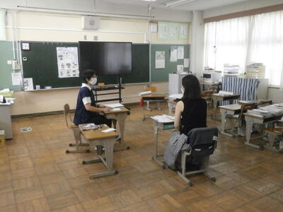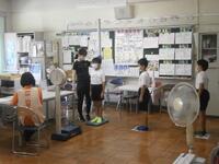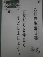 全校放送で始業式を行いました。校長先生の話に続き、生活指導の先生から『9月の目標』と健康面についてのお話がありました。
