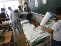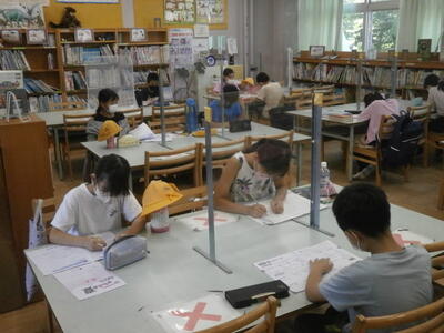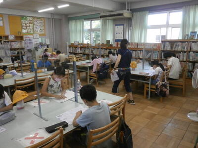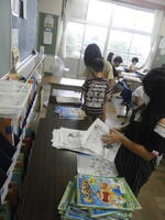 放課後に夏休みの図書の貸し出しがありました。いつもより多く借りられるため、選ぶのも一苦労です。