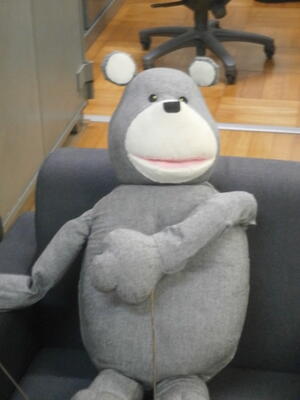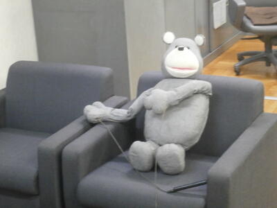 【校長室のお客さん・・・?】家の片付けをしていたら、大学時代に人形劇サークルで使っていた人形が出てきたので、学校に連れてきました。何かの機会に子どもたちに披露する時が来るかも?