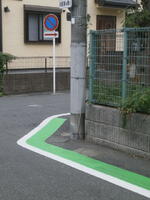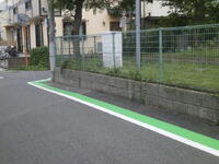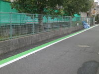 また、プール脇の道路にもきれいなグリーンロードができました。登下校時には、広がらずに歩きましょう。