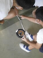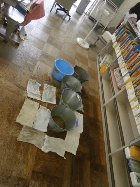 2年生のあるクラスでは、なんとエアコンから水漏れが・・・ それでも子どもたちはバケツに落ちる水滴を集め、楽しそうです。(修理手配済みです)