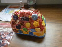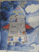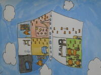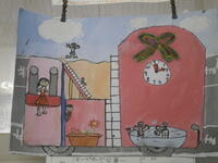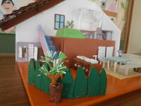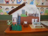 廊下には、いろいろな夏休みの工作や作品が展示してあります。新築のお家でしょうか、細かいところまでよく工夫できています。
