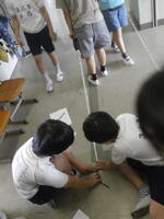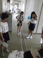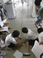 【3年 算数】教室や廊下の長さを巻き尺で測っていきます。予想は当たったかな?
