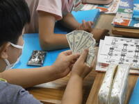すごろく形式で楽しみながら英語に触れています。中には、大金持ちになった子も・・・
