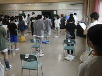 全校放送で1学期の終業式を行いました。校長先生の話に続いて、生徒指導の先生から夏休みの注意点について『な・つ・や・す・み』の文字に合わせて、お話がありました。