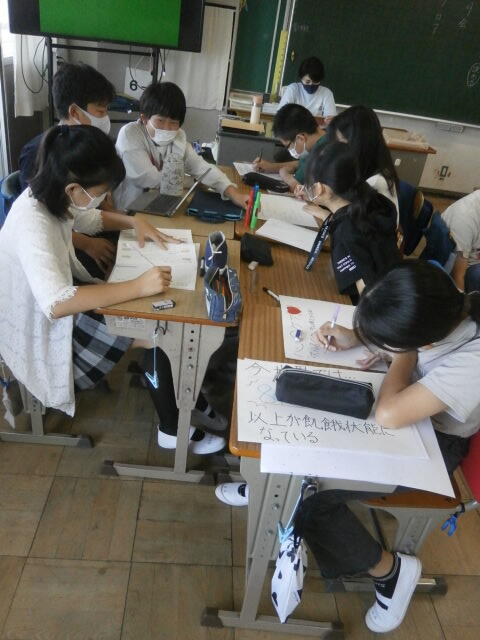新聞から興味のある記事を集め、友達との話し合いを通してSDGsへの理解を深めていきます。今日の授業の様子は、夏の『全国新聞教育研究大会』で紹介される予定です。