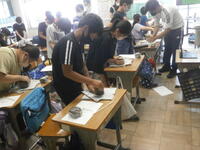 理科の先生に植え方の説明を聞いた後、サツマイモの苗を植えました。今から収穫が楽しみです。