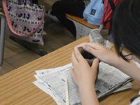 漢字辞典の使い方の授業です。自分の名前の漢字など、興味深く調べています。