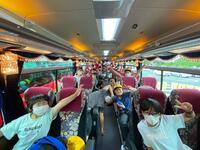 実行委員による司会進行のもと出発式を終え、いよいよ出発です。全員元気にバスにのりました!