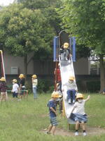 近くの大和田4丁目公園(パンダ公園)までクラスごとに行きました。途中、交通ルールを確認しながら、学校とは違う遊具もあり、楽しいひと時を過ごしました。