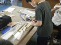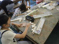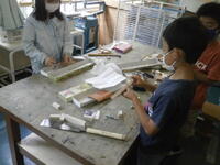 図工室で製作中です。思い思いのアイデアや工夫で作品が出来上がっていきます。
