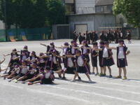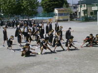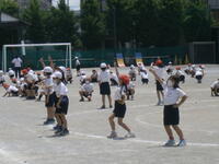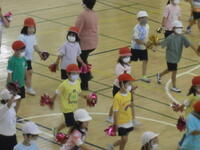 運動会前日の今日は、残念ながら雨が降ってしまいました。練習は体育館で行いました。