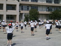 明後日に運動会を控え、練習にも一層熱が入っています。校庭では3,4年生が南中ソーラン節を踊っています。
