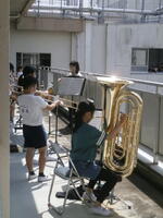 ロング昼休みに吹奏楽部が、3階ベランダでミニコンサートを行いました。