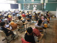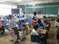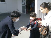 入学式後、1年生は初めての登校です。たくさんのお見送り、ありがとうございます。