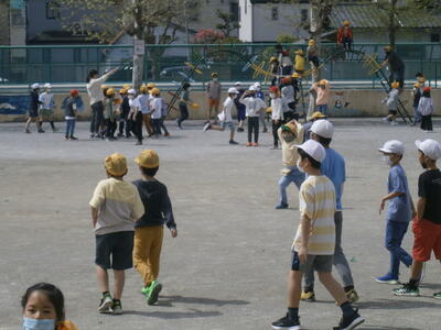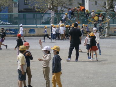 業間休みの風景です。暖かくなり、皆、元気いっぱいです。