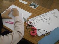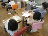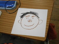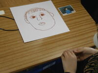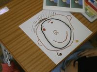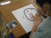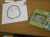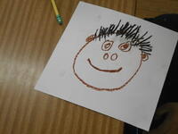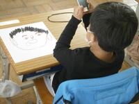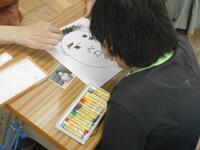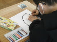 わかば学級の図工の様子です。自分の写真を見ながらクレヨンで自分の顔を描いています。