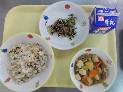 わかめご飯・フワフワのお麩・ナタデココ入りオレンジゼリーも大人気でした。