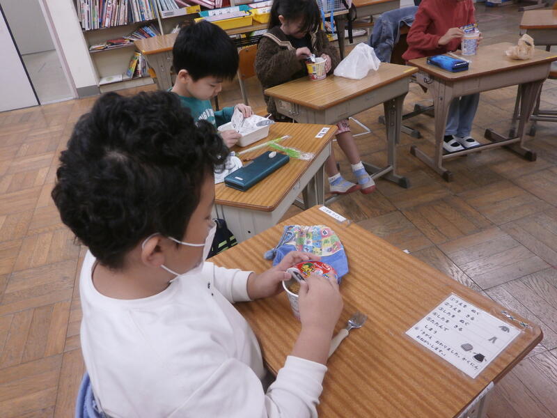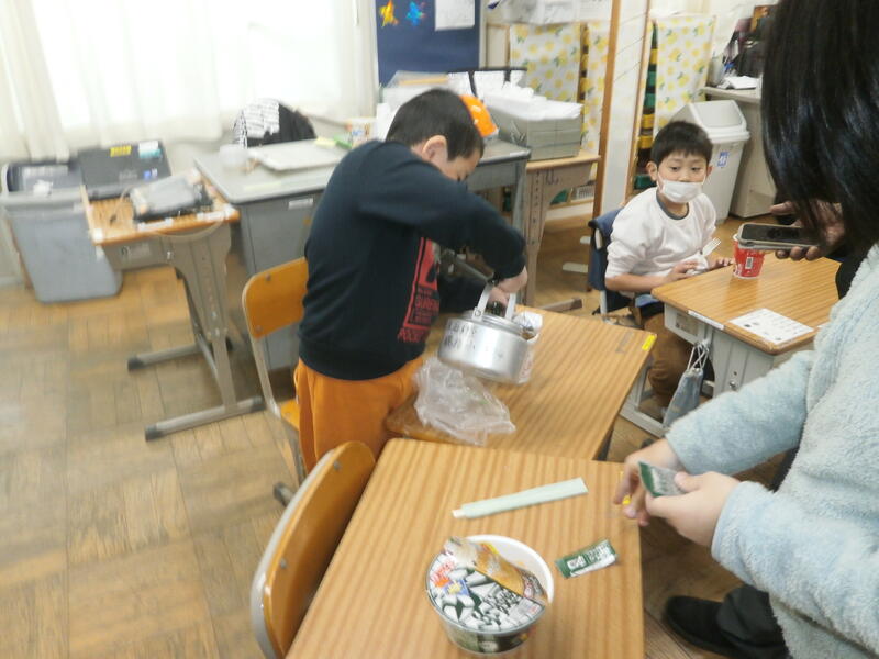 わかば学級が「自立活動」の学習で、カップ麺を作り方を学びました。