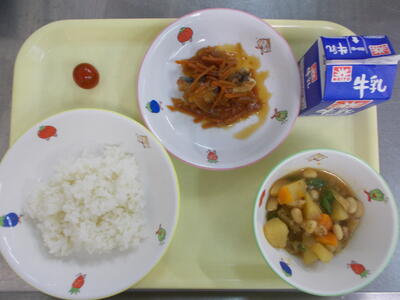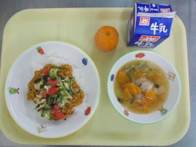 今日の給食は、「ビビンバ」と「キムチスープ」でした。