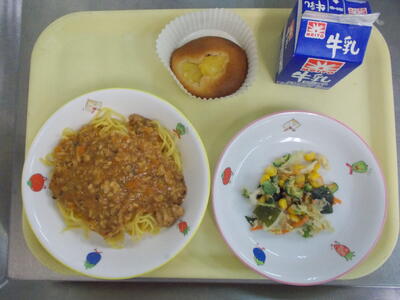 今日は八十八夜の日にちなんで、「抹茶マフィン」が給食に登場しました。