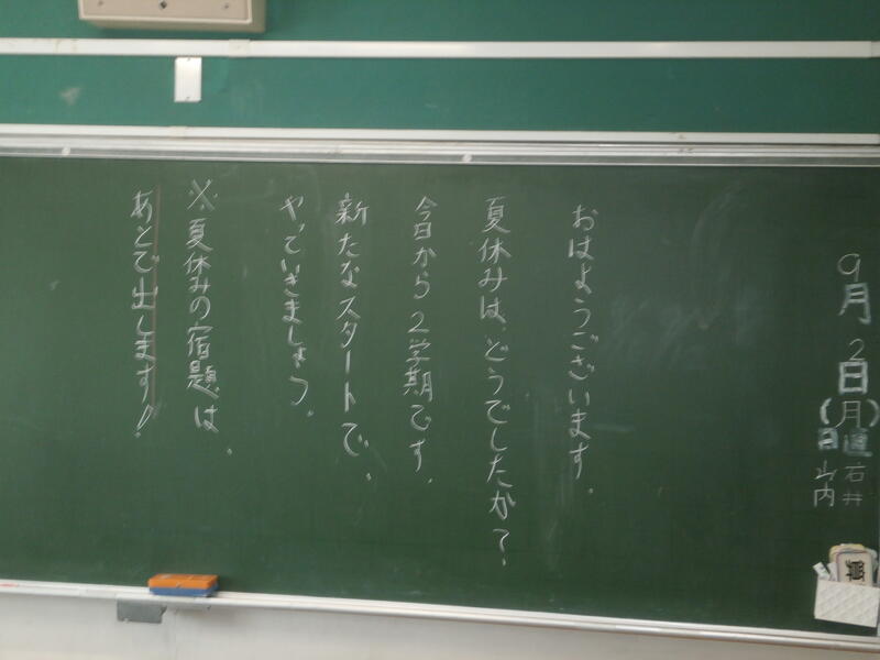 今日から2学期が始まりました。欠席者も少なく、ほっとしました。