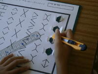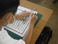 【2年 図工①】カッターナイフで紙を切る練習をしています。直線、曲線、波線・・・うまく切れたかな?