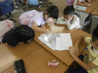水のかさ(量)を実際の水で確認しています。1リットルは、何デシリットル・・・?
