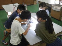 中庭で採った花を顕微鏡で観察しています。よく見えるかな?