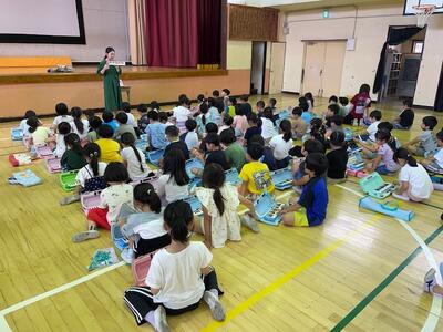 本日の4時間目は、1年生の鍵盤ハーモニカ教室でした。講師の先生に、ケースからの出し方、音の出し方、ケースへの片づけ方などを講師の先生から指導していただきました。